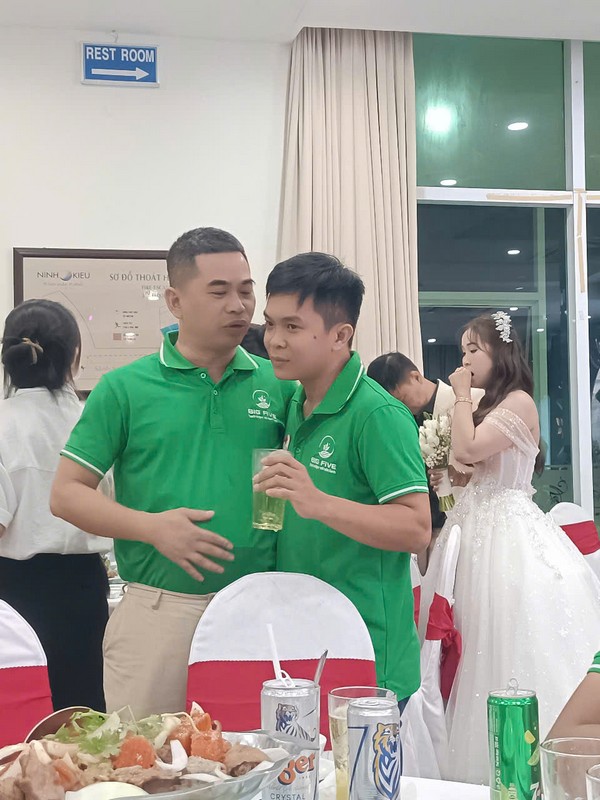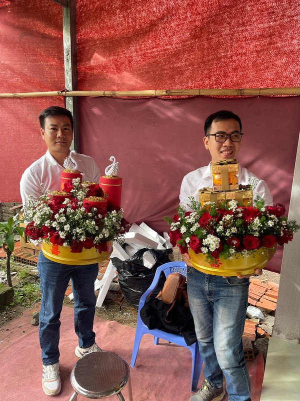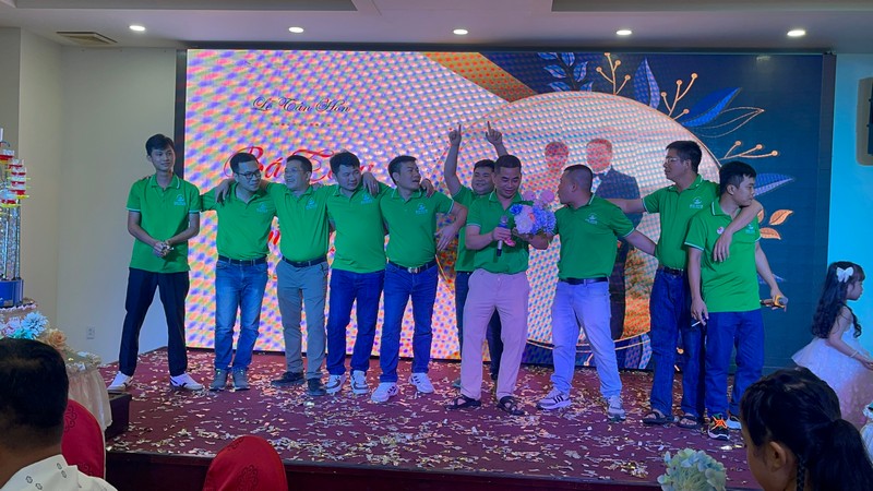 Điều khiến mọi người thích thú nhất là hình ảnh các anh em Big Tree – từ kinh doanh đến kỹ thuật – áo sơ mi trắng đóng thùng chỉnh tề, tay bê mâm tráp, bưng lễ vật qua nhà gái. Nhìn vừa trang trọng, vừa vui mắt, lại còn siêu “tình thân mến thương” – đúng chuẩn công ty gắn kết như gia đình.