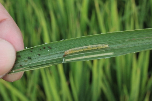 - Hành vi: Sâu non dùng tơ để cuốn lá lúa thành tổ, sống và ăn bên trong.