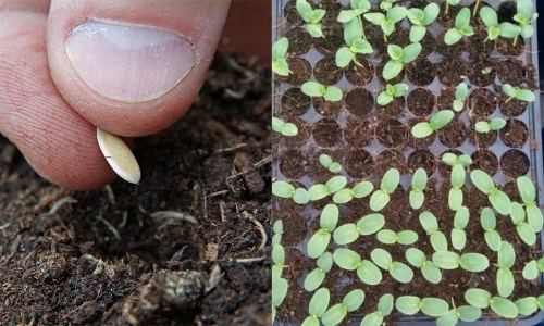 • Đặt khay ươm ở nơi thoáng mát, tránh ánh nắng trực tiếp. Sau 2-3 ngày, hạt nảy mầm; sau 7-10 ngày, cây có 2-3 lá thật thì chuyển sang chậu/luống lớn.