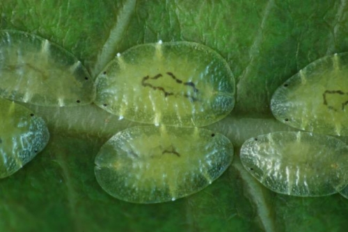 Rệp vảy xanh tấn công lá và chồi non