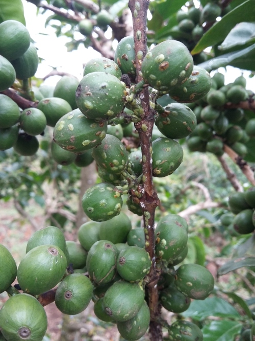 Rệp vảy xanh gây hại nặng cho quả cà phê