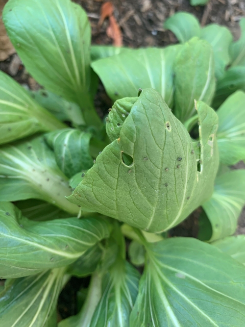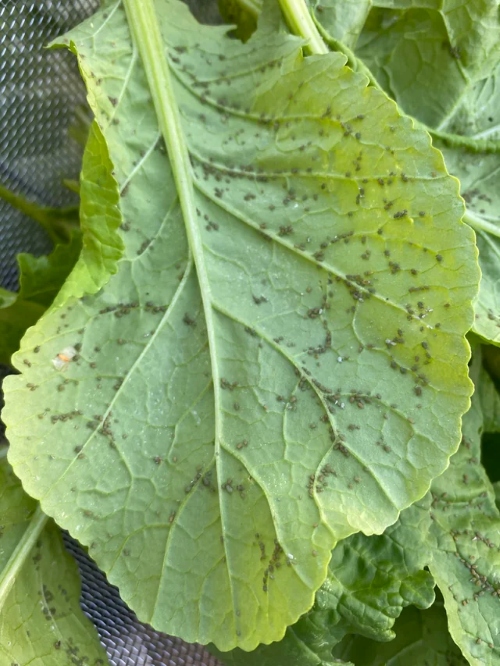 - Quan sát trực quan: Rệp thường tụ tập thành đàn ở mặt dưới lá cải xanh, thân non hoặc ngọn cây. Lật mặt lá có thể thấy rõ rệp di chuyển.